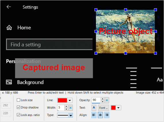 ScreenHunter has many tools for drawing vector objects. You can draw basic shapes, arrows, freehand lines, load symbols, and pictures.
