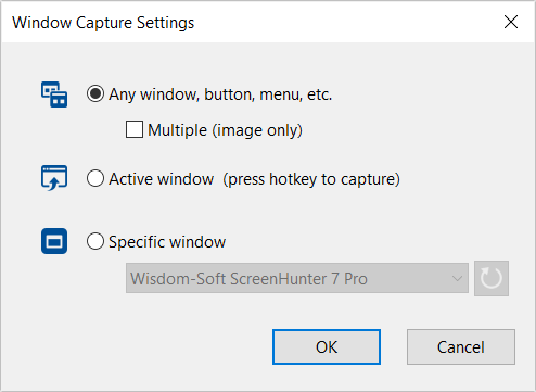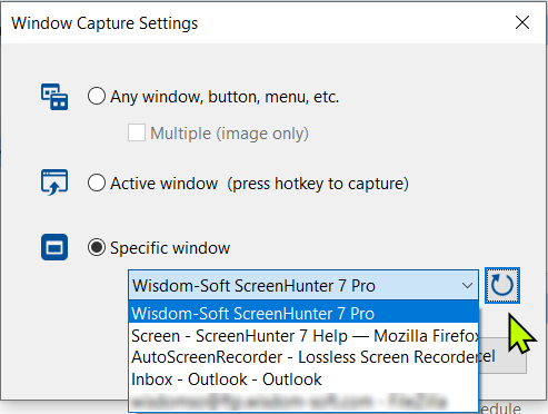 Specific window - Capture a specific window, even if it is minimized or covered.