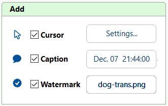 Add the mouse pointer. AutoScreenRecorder can record enlarged mouse pointers on Windows 10.
