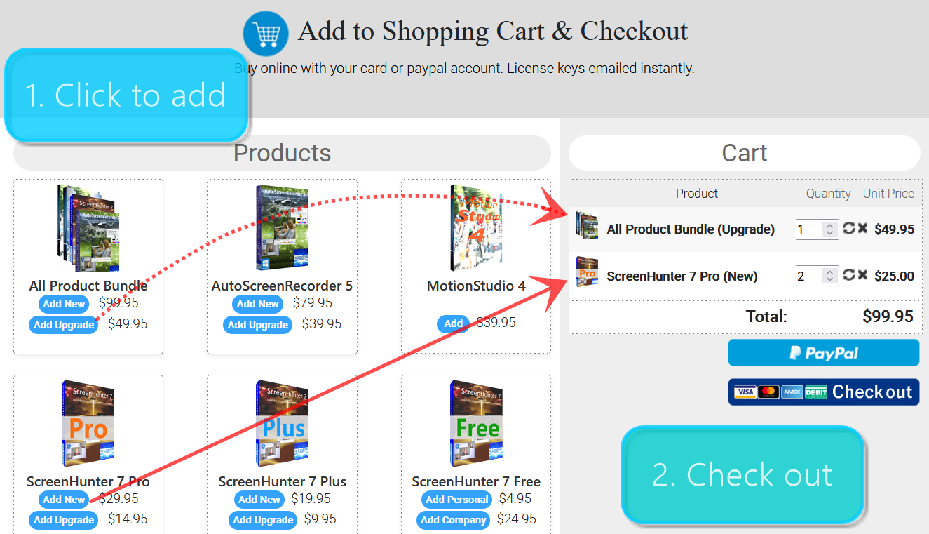 カードまたはPayPalを使用してオンラインで購入します。 ライセンスキーは自動的Eメールで送信されます。