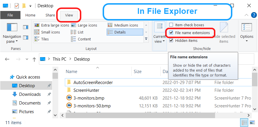 A file extension is the characters that appear after the period of the file name, like in MyFile.xxx. Usually, it indicates the file format.