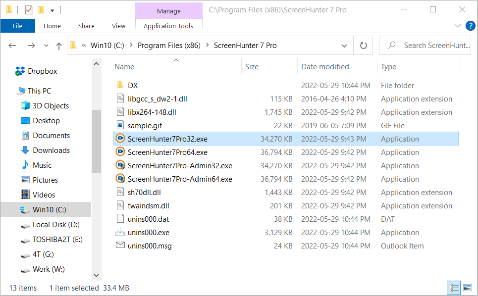 2. Windows エクスプローラーで、ScreenHunter 7 Pro フォルダーに移動します。