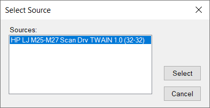 ソース リストには、PC にインストールされているスキャナが表示されます。